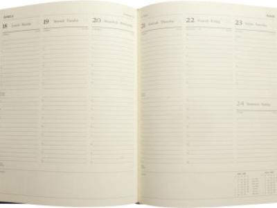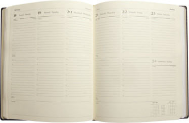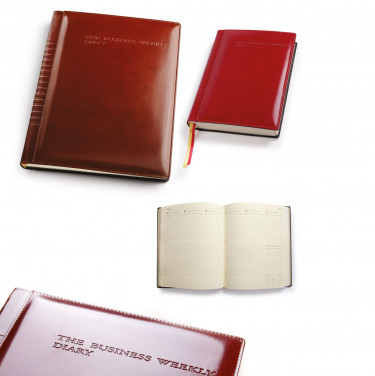 Agenda “Business” in coagulato poliuretano. Interno settimanale, stampa 1 colore, carta avorio. Rubrica telefonica estraibile, calendario planning. Cartina geografica. Informazioni su paesi nel mondo.