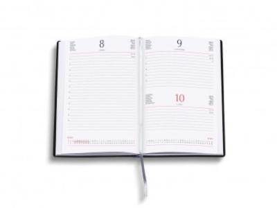 Agenda giornaliera “Tavecchi”.Materiale : printflex termovirante. Interno stampa 2 colori. Multilingue. Carta bianca usomano. Rubrica telefonica.