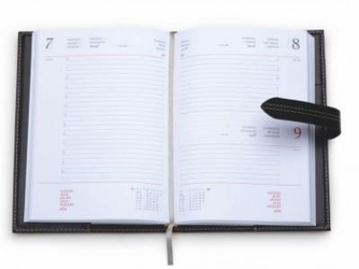 Agenda in similpelle. Vano porta penna. Interno mobile giornaliero(15x21) Stampa 2 colori. Multilingue, rubrica telefonica. Sabato e domenica abbinati, carta bianca.