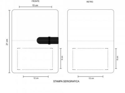 Aria di stampa max cm 12 x 6 oppure su lato più grande con stampa cm 12 x 6 con stampa in serigrafia monocolore. Grafica fornita dal cliente o richiedere bozza fornendo il logo in alta qualità o in vettoriale, inoltre indicare colore preferito articolo e colore di stampa.