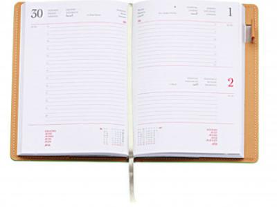 Agenda PU. Vano p/penna. Interno mobile giornaliero (15x21). Stampa 2 colori. Multilingue. Sabato e domenica abbinati. Rubrica telefonica, dati personali, carta bianca.