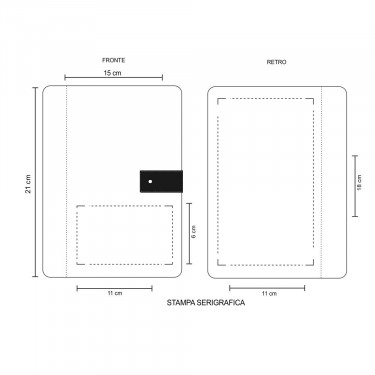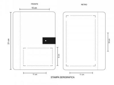 Aria di stampa max cm 11 x 6 oppure su lato più grande con stampa cm 11 x 18 con stampa in serigrafia monocolore. Grafica fornita dal cliente o richiedere bozza fornendo il logo in alta qualità o in vettoriale, inoltre indicare colore preferito articolo e colore di stampa.