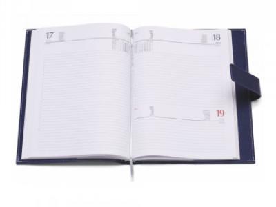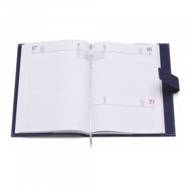 Agenda PU termopvirante. Vari scomparti interni porta card, vano porta penna. Chiusura calamitata Interno mobile giornaliero (15x21). Stampa 2 colori. Multilingue. Sabato e domenica abbinati, rubrica telefonica, carta bianca.