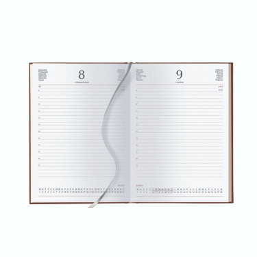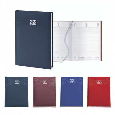 Agenda giornaliera in matra. Interno stampa 2 colori. Multilingue. Sabato e domenica separati, rubrica telefonica, cartina geografica.