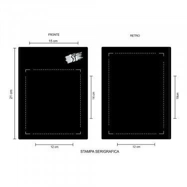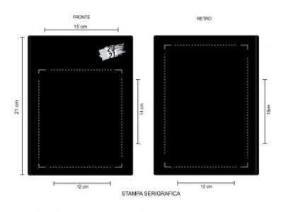 Aria di stampa max cm 12 x 14 oppure su lato più grande con stampa cm 12 x 18 con stampa in serigrafia monocolore. Grafica fornita dal cliente o richiedere bozza fornendo il logo in alta qualità o in vettoriale, inoltre indicare colore preferito articolo e colore di stampa.