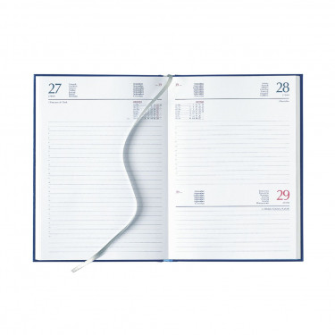 Agenda giornaliera in matra. Interno stampa 2 colori. Multilingue. Sabato e domenica abbinati, rubrica telefonica, cartina geografica, festività nel mondo. Colore unico. . Dimensioni cm 15x21.