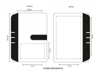 Aria di stampa max cm 11 x 6 oppure su lato più grande con stampa cm 11 x 18 con stampa in serigrafia monocolore. Grafica fornita dal cliente o richiedere bozza fornendo il logo in alta qualità o in vettoriale, inoltre indicare colore preferito articolo e colore di stampa.