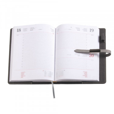 Agenda giornaliera Pu termovirante. Chiusa da linguetta con piastrina in metallo calamitato. Vano porta penna. Interno mobile giornaliero (15x21). Stampa 2 colori. Multilingue. Sabato e domenica abbinati. Carta bianca, rubrica telefonica, dati personali. Confezione in astuccio. Dimensioni cm. 16x21,5. Colori: arancio, rosso, marrone, blu, grigio. Aria di stampa max cm 10 x 6 oppure su lato più grande con stampa cm 10 x 21 con stampa in serigrafia monocolore. Grafica fornita dal cliente o richiedere bozza fornendo il logo in alta qualità o in vettoriale, inoltre indicare colore preferito articolo e colore di stampa. il prezzo indicato e per un pezzo compreso stampa con un minimo di ordine di 1 cartone contenente 30 pezzi per colore, per ordine multipli viene applicato uno sconto.