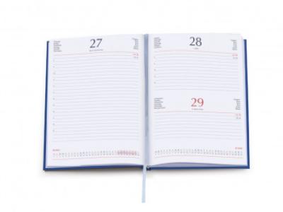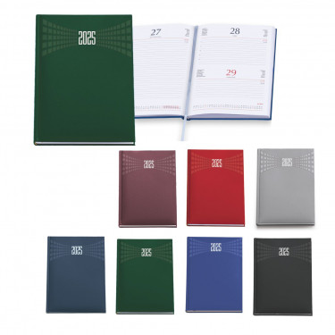 Agenda giornaliera in matra. Interno stampa 2 colori. Multilingue. Sabato e domenica abbinati, rubrica telefonica, cartina geografica. Dimensioni cm 17x24.