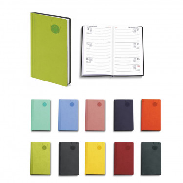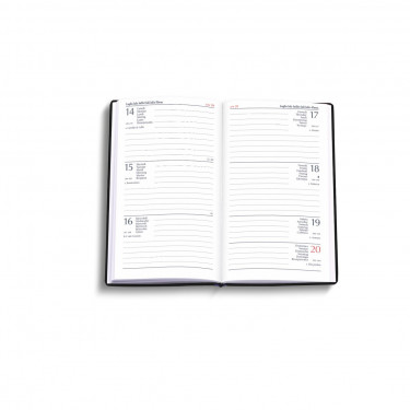 Agenda settimanale “Tavecchi”.Materiale : printflex termovirante. Interno stampa 2 colori. Multilingue. Carta bianca usomano. Rubrica telefonica. Dimensioni cm8x14.