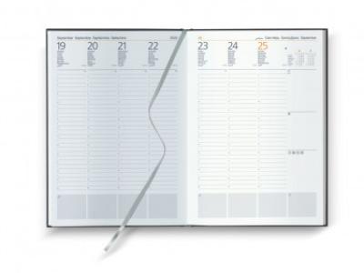 Agenda settimanale in matra. Interno stampa 2 colori. Multilingue. Rubrica telefonica, cartina geografica, calendario planning.