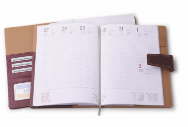 Agenda in similpelle. Vari scomparti porta carte di credito, porta documenti, vano porta penna Chiusura calamitata. Interno mobile settimanale (17x24). Stampa 2 colori. Multilingue, rubrica telefonica, carta bianca. Confezione in astuccio. Dimensioni cm 18x25. Colori: blu, rosso, nero. Aria di stampa max cm 14 x 7 oppure su lato più grande con stampa cm 14 x 21 con stampa in serigrafia monocolore. Grafica fornita dal cliente o richiedere bozza fornendo il logo in alta qualità o in vettoriale, inoltre indicare colore preferito articolo e colore di stampa. il prezzo indicato e per un pezzo compreso stampa con un minimo di ordine di 1 cartone contenente 30 pezzi per colore, per ordine multipli viene applicato uno sconto.