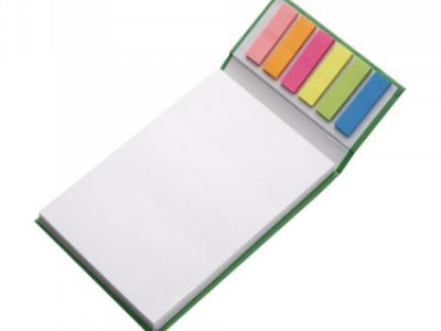 Blocco notes con post-it colorati. Testata colorata. Confezione in astuccio.