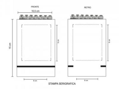 Aria di stampa per questo articolo e in serigrafia con stampa fronte e retro di cm 8x9, la stampa e in monocolore ( se si desidera la stampa a più colori farne richiesta per eventuale possibilità e per il prezzo).