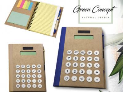 Blocco notes “ Eco Paper”. Chiuso con elastico colorato. Corredato di: 25 post-it per colore, penna refill nero.