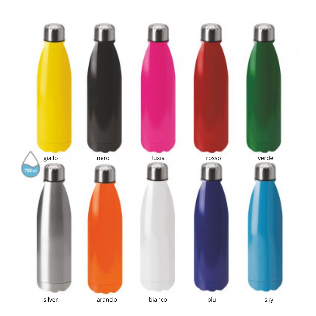 Borraccia Acciaio. Capacità 750ml singola parete. Acciaio inox 304.