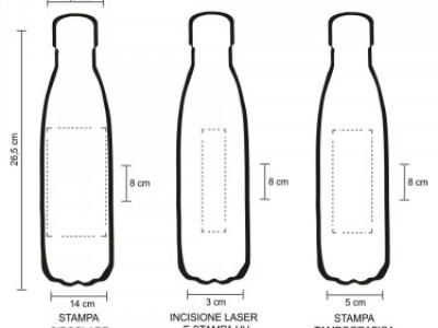 Aria di stampa in tre modalità che sono tampografia max cm 5 x 8, incisione laser e stampa UV max cm 3 x 8 ed stampa circolare max cm 14 x 8 in tutti i tre i casi stampa monocolore (stampa multicolor richiedere info e preventivo). Grafica fornita dal cliente o richiedere bozza fornendo il logo in alta qualità o in vettoriale, inoltre indicare colore preferito e colore di stampa.