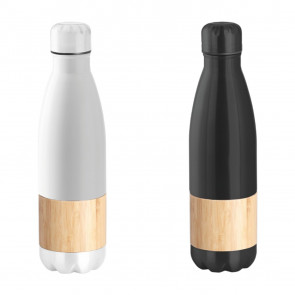 Borraccia Termica 500ml, in acciaio inox doppia parete e fascia in bamboo.