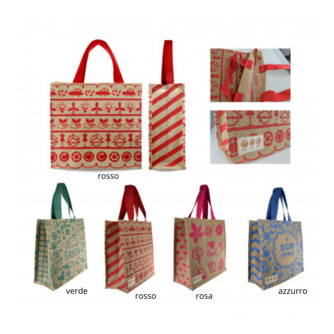 Borsa in juta con finiture e manici rinforzati in cotone. Ecosostenibili e impermeabili.