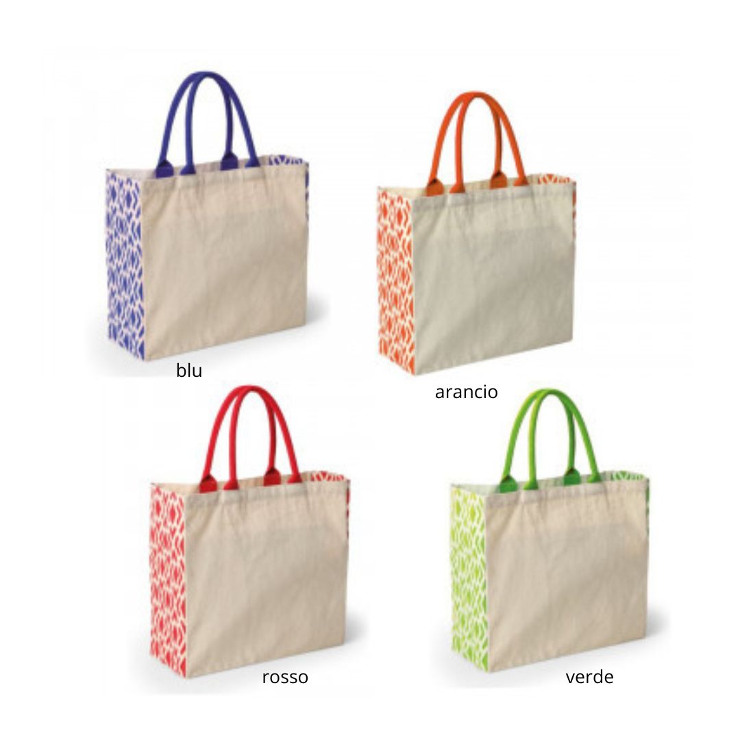 Borsa mare in canvas 320gr. Doppio manico (cm.46xØ 1,5) soffietto colorato, aria di stampa max cm 27 x 28 con stampa in serigrafia monocolore. Se si desidera la stampa su ambo i lati richiedere se e possibile su questo articolo e costi aggiuntivi.