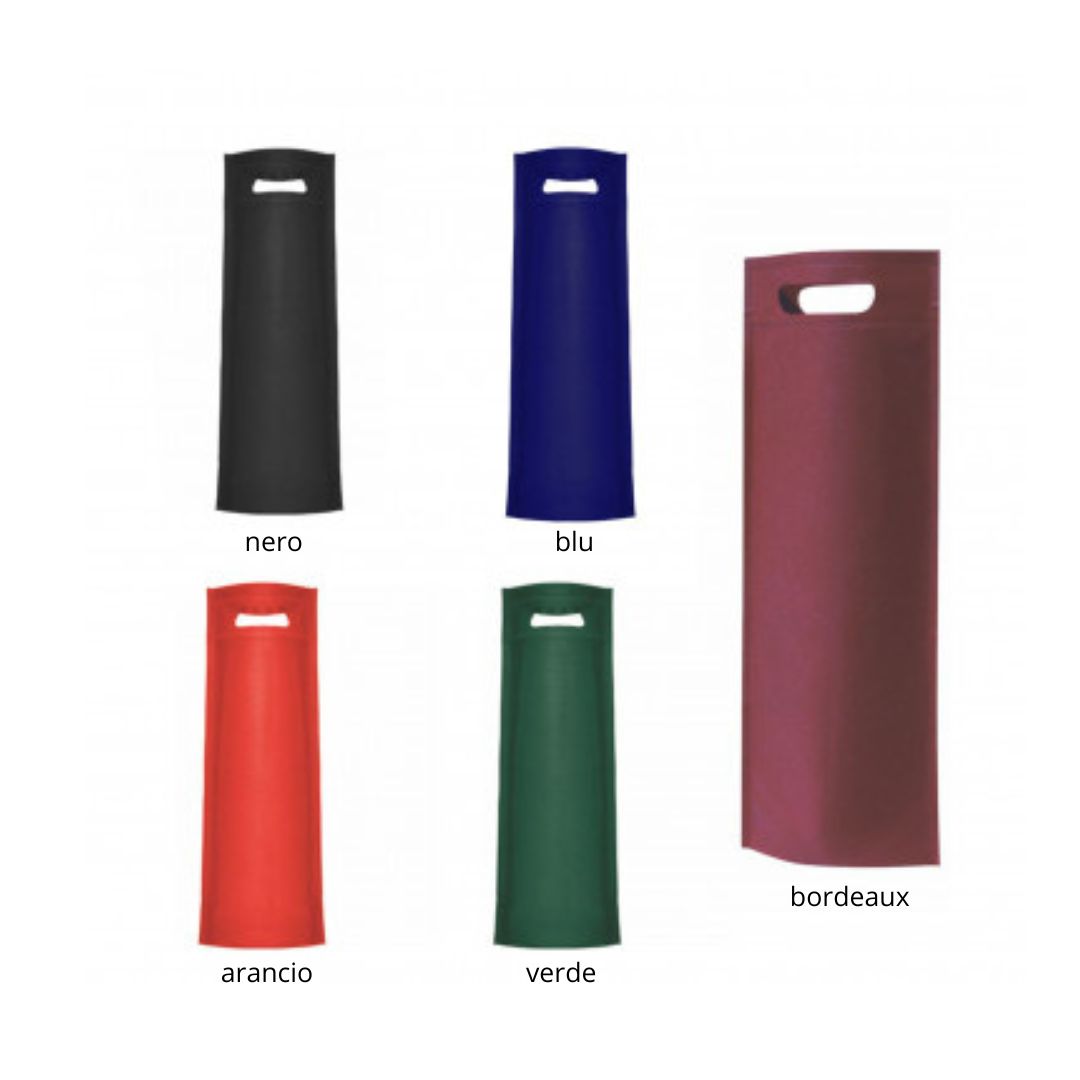 Borsa termosaldata speciale per bottiglie, con soffietto alla base, fabbricata in tessuto no woven (TNT), con manici fusellati, aria di stampa max cm 13 x 26 con stampa in serigrafia monocolore. Se si desidera la stampa su ambo i lati richiedere se e possibile su questo articolo e costi aggiuntivi. Grafica fornita dal cliente o richiedere bozza fornendo il logo in alta qualità o in vettoriale, inoltre indicare colore preferito e colore di stampa. dimensione portabottiglia: cm 40 x 17 colori:arancio, blu, bordeaux, verde, nero. Il prezzo indicato e per un pezzo compreso stampa, con un minimo di ordine di 1 minipack e da 50 pezzi, per ordine multipli viene applicato uno sconto.