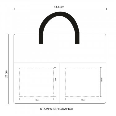 Aria di stampa max cm 16 x 14 su due aree di stampa , con stampa in serigrafia monocolore. Grafica fornita dal cliente o richiedere bozza fornendo il logo in alta qualità o in vettoriale, inoltre indicare colore preferito e colore di stampa.