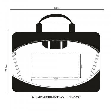 Borsa professionale poliestere 600D. Tasca frontale c/zip. Tracolla regolabile e removibile. Doppio manico. Confezione in polybag.