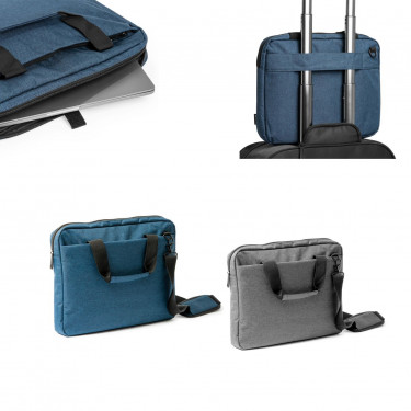 Portadocumenti imbottito per laptop dal design vigoré. Due scomparti con cerniera impermeabile. Manici abbinati e tracolla regolabile. Include cintura per trolley. In RPET 600D.7 Aria di stampa max cm 20 x 18 con stampa in serigrafia monocolore. Grafica fornita dal cliente o richiedere bozza fornendo il logo in alta qualità o in vettoriale, inoltre indicare colore preferito e colore di stampa. Colori: blu, grigio. Dimensioni: cm 37x28x5 Il prezzo indicato e per un pezzo compreso stampa, con un minimo di ordine 30 pezzi, per ordine multipli viene applicato uno sconto.