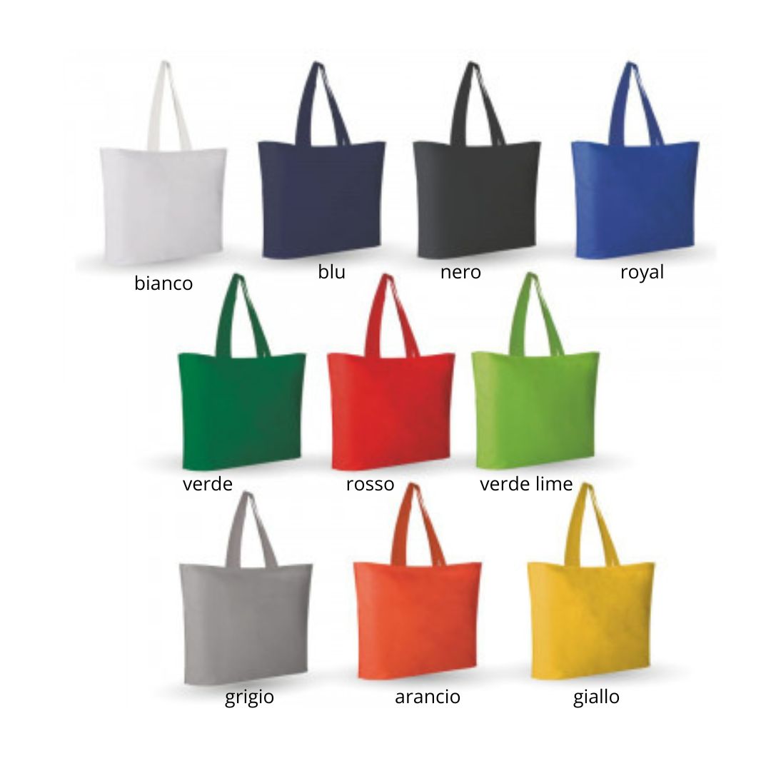 Borsa shopping termosaldata in tnt. Base con soffietto. Manici a tracolla (cm.2,5x54), aria di stampa max cm 28.5 x 21 con stampa in serigrafia monocolore. Se si desidera la stampa su ambo i lati richiedere se e possibile su questo articolo e costi aggiuntivi.