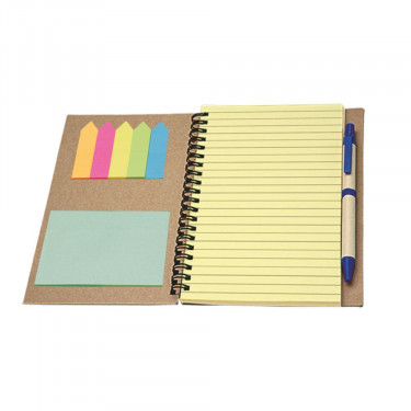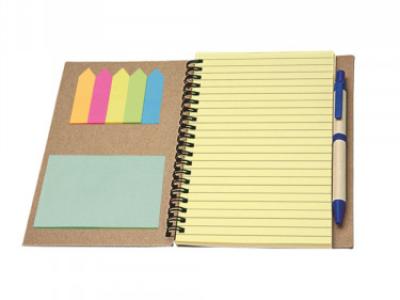 Calcolatrice “Eco paper”. Corredata di : blocco notes a righe 75 fogli/150 pagine, 25 post-it per colore, penna refill nero.