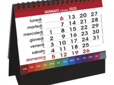 Calendario Desk”. Mensile 13 fogli fustellati . Cartoncino nero. Carta patinata.