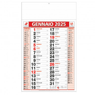 Calendario olandese medio. Trimestrale 12 fogli. Testata pressofusa. Carta patinata.