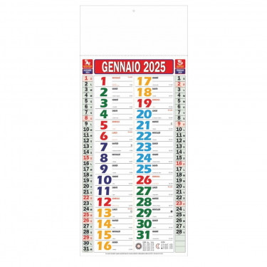 Calendario olandese “Multicolor”. Trimestrale 12 fogli. Testata pressofusa.