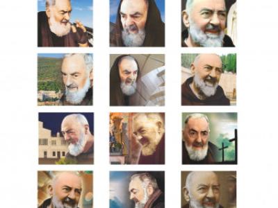 Calendario “San Pio”. Trimestrale 12 fogli. Testata pressofusa. Carta patinata.