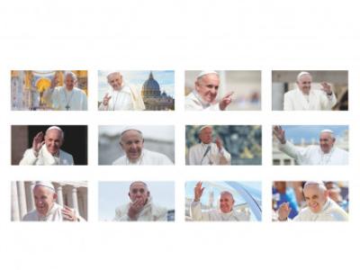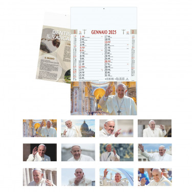 Calendario “Papa Francesco”. Trimestrale.12 fogli + retro. Testata pressofusa carta patinata.