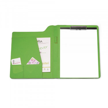 Cartella congresso 2 ante con pressino, in similpelle. Interno colorato. Varie tasche interne porta documenti, porta card, porta penna. Completa di blocco. Colori: royal, arancio, rosso, verde li-me. Confezione in astuccio. Dimensioni cm.25x32. Aria di stampa per questo articolo e in serigrafia con stampa solo fronte cm 20x10, la stampa e in monocolore ( se si desidera la stampa a più colori farne richiesta per eventuale possibilità e per il prezzo). Grafica fornita dal cliente o richiedere bozza fornendo il logo in alta qualità o in vettoriale, inoltre indicare colore preferito e colore di stampa. Il prezzo indicato e per un pezzo compreso stampa solo frontale in serigrafia, con un minimo di ordine 20 pezzi , per ordine multipli viene applicato uno sconto