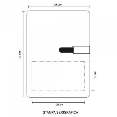 Aria di stampa per questo articolo e in serigrafia con stampa solo fronte cm 20x10, la stampa e in monocolore ( se si desidera la stampa a più colori farne richiesta per eventuale possibilità e per il prezzo).