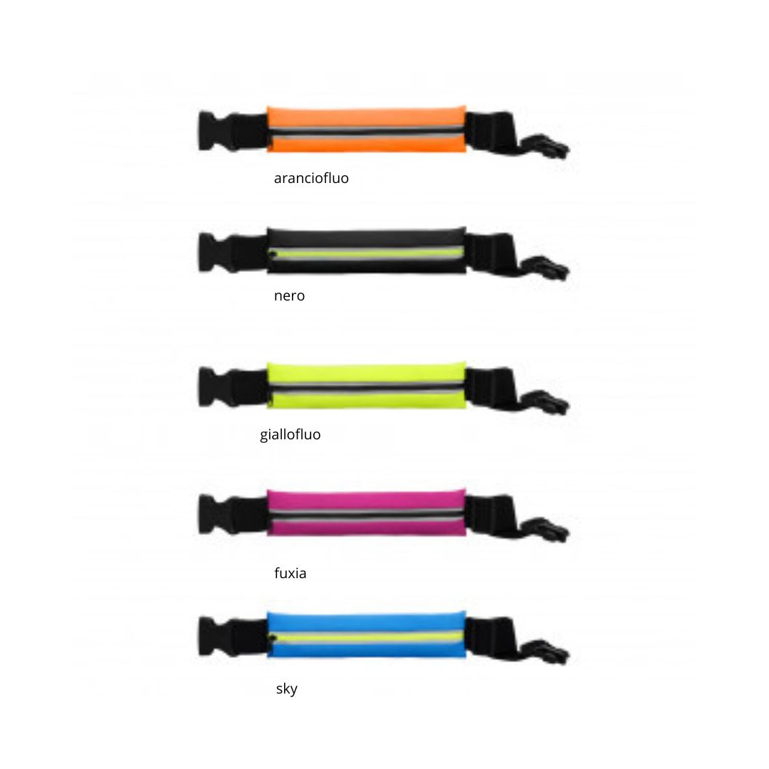 Cintura sportiva multifunzionale in tessuto elastico e impermeabile. Tasca estensible, tessuto elastico, cerniera riflettente, uscita cavo, cintura regolabile in vita. 100% poliestere. Etichetta rimovibile. Dimensioni: cm 23x5,5. Area di stampa dipende dal cliente cosa vuole riportare oltre il proprio logo, la stampa viene eseguita in serigrafia con stampa monocolore, (per stampa multicolor e DTF chiedere se possibile sul tipo di materiale e costi). Grafica fornita dal cliente o richiedere bozza fornendo il logo in alta qualità o in vettoriale, inoltre indicare colore preferito e colore di stampa. Colori disponibili quelli presenti in foto. Il prezzo ondicato e con stampa in serigrafia monocolore con un minimo di acquisto di 50 pezzi.