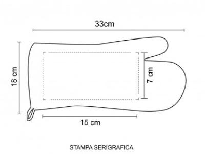 Guanto da cucina in canvas. Retro personalizzabile. Colori: verde, bianco, rosso. Confezione in polybag. Dimensioni cm. 18x33. Aria di stampa max 15 x 7 cm con stampa in serigrafia/tampografia monocolore. Grafica fornita dal cliente o richiedere bozza fornendo il logo in alta qualità o in vettoriale, inoltre indicare colore preferito e colore di stampa. il prezzo indicato e per un pezzo compreso stampa con un minimo di ordine di 1 cartone contenente 50 pezzi per colore, per ordine multipli viene applicato uno sconto.