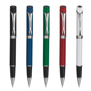 Penna roller in metallo.. Clip in metallo. Refill nero.