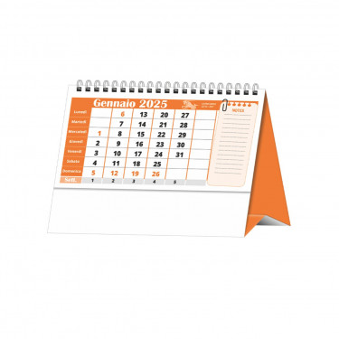 Carta patinata 100g/m², trimestrale 13 fogli Dimensioni: cm 19x14,5 Materiale: Carta patinata Pack: 100 Piedino: cm 19x3,5. colori: rosso, verde, arancio, blu. Aria di stampa max cm 19 x 3.5 con stampa in serigrafia monocolore. Grafica fornita dal cliente o richiedere bozza fornendo il logo in alta qualità o in vettoriale, inoltre indicare colore preferito articolo e colore di stampa. Per la stampa digitale multicolor o stampa su ambo i lati richiedere preventivo dedicato. il prezzo indicato e per un pezzo compreso stampa con un minimo di ordine di 1 cartone contenente 100 pezzi per colore, per ordine multipli viene applicato uno sconto.