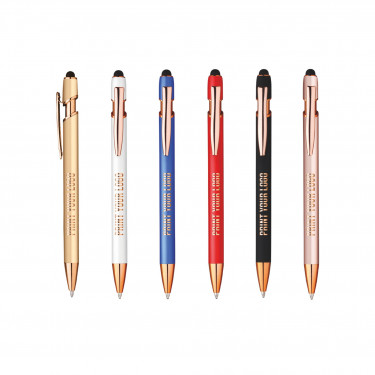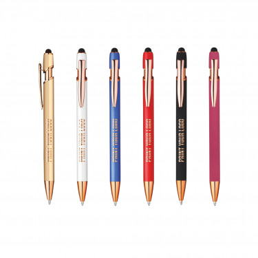 Penna in alluminio con finitura rubber con clip in alluminio. Con incisione laser sul fusto, il logo si mostrerà nel colore oro.