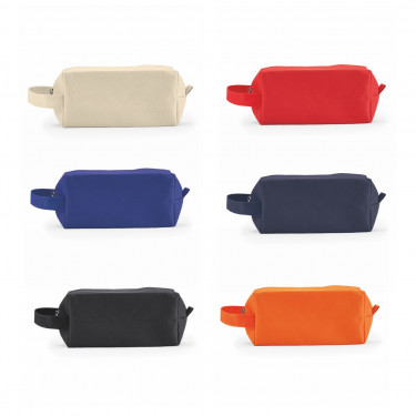 Pochette in Poliestere 600D. Chiusura con zip e manico per il trasporto. Dimensione: cm 20x9,8x8,3. colori: arancio, avana, blu, nero, rosso, royal. Aria di stampa max cm 10 x 8 con stampa in serigrafia/tampografia monocolore. Grafica fornita dal cliente o richiedere bozza fornendo il logo in alta qualità o in vettoriale, inoltre indicare colore preferito e colore di stampa. il prezzo indicato e per un pezzo compreso stampa con un minimo di ordine di 1 cartone contenente 50 pezzi per colore, per ordine multipli viene applicato uno sconto.