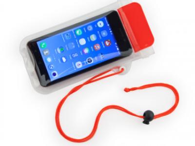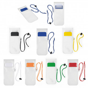 Porta cellulare waterproof, in pvc e poliestere. Cordoncino con chiusura di sicurezza di cm. 94.