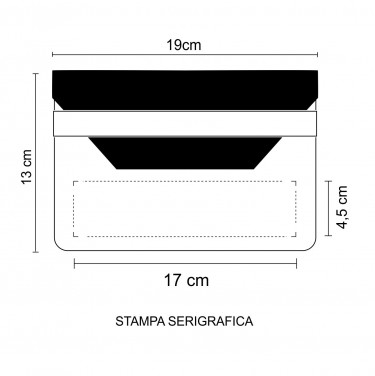Aria di stampa max cm 17x4,5 con stampa in serigrafia monocolore. Grafica fornita dal cliente o richiedere bozza fornendo il logo in alta qualità o in vettoriale, inoltre indicare colore preferito e colore di stampa.