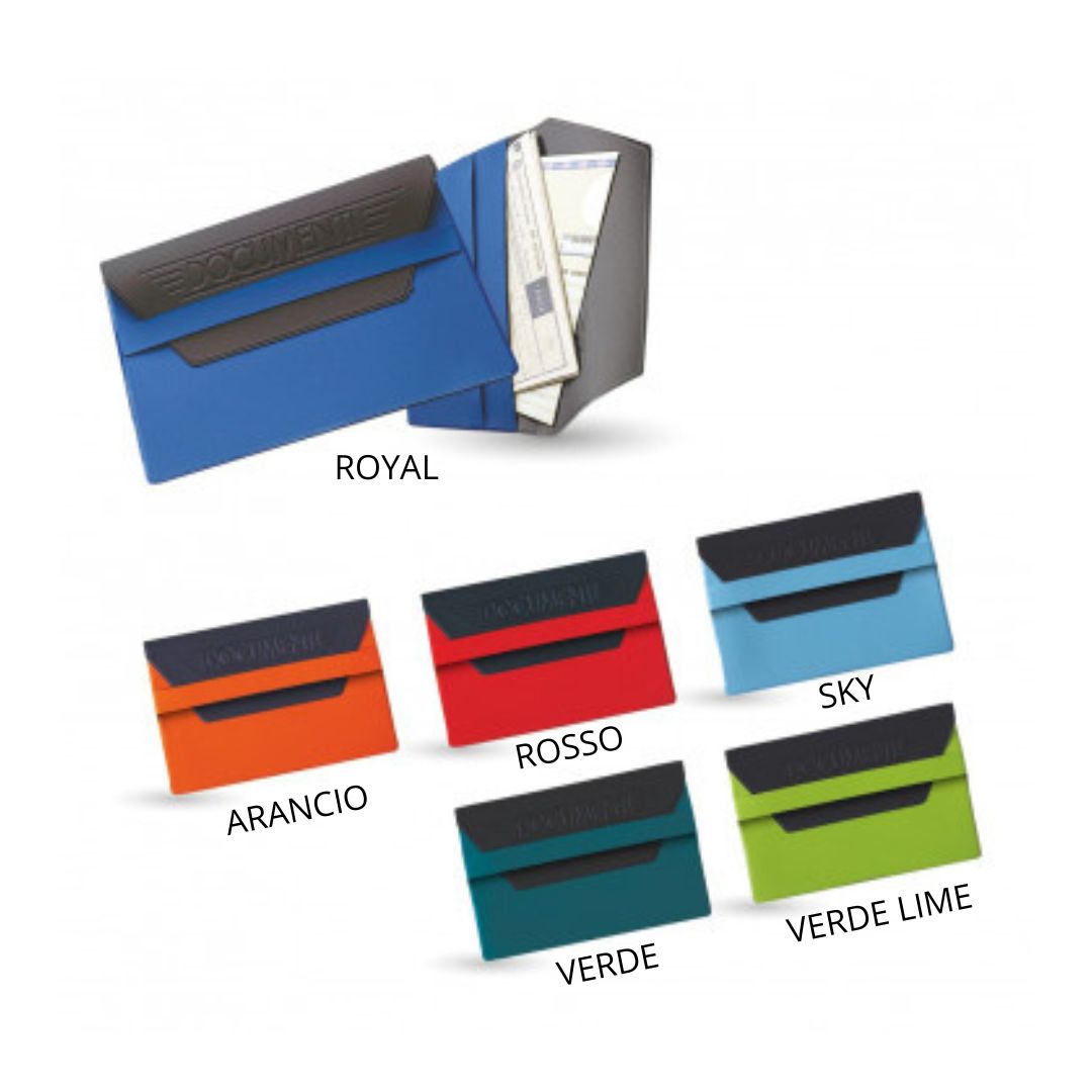 Porta documenti con fascetta in tam bicolore, dimensione cm 19x13.