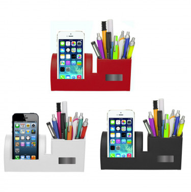 Porta penne-porta cellulare in similpelle. Colori: bianco, nero, rosso.
