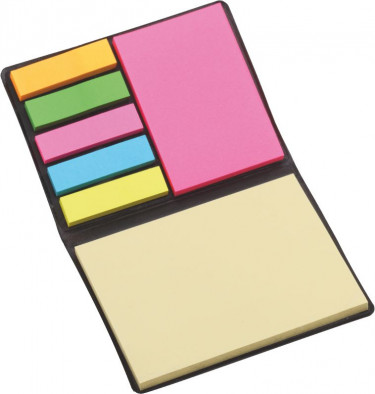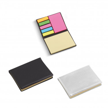Porta post-it in similpelle. Completo di 200 post-it multicolore.