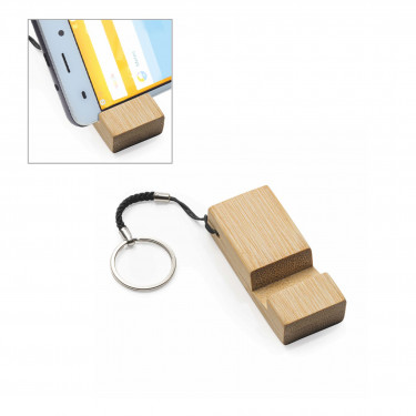 Portachaivi in bamboo con funzione di supporto smartphone. Dimensioni: cm 2,6x6. Confezione in polybag.