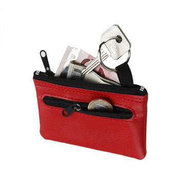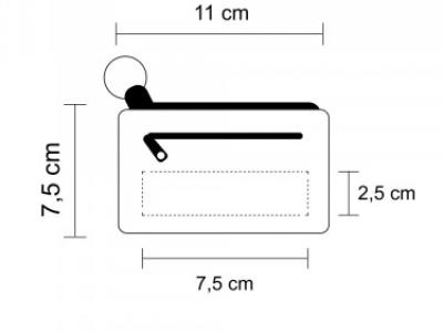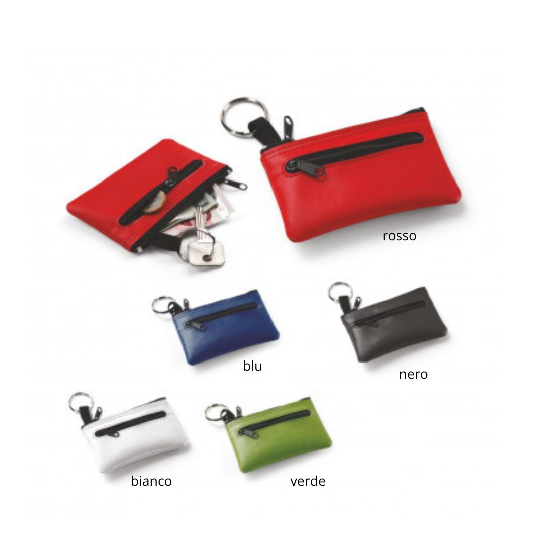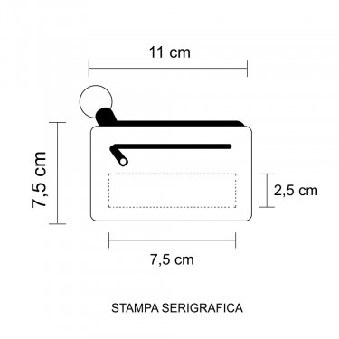 Portachiavi-portamonete in pu termovirante. Chiusura con doppia zip, aria di stampa max cm 7.5 x 2.5 con stampa in serigrafia monocolore. Grafica fornita dal cliente o richiedere bozza fornendo il logo in alta qualità o in vettoriale, inoltre indicare colore preferito e colore di stampa.